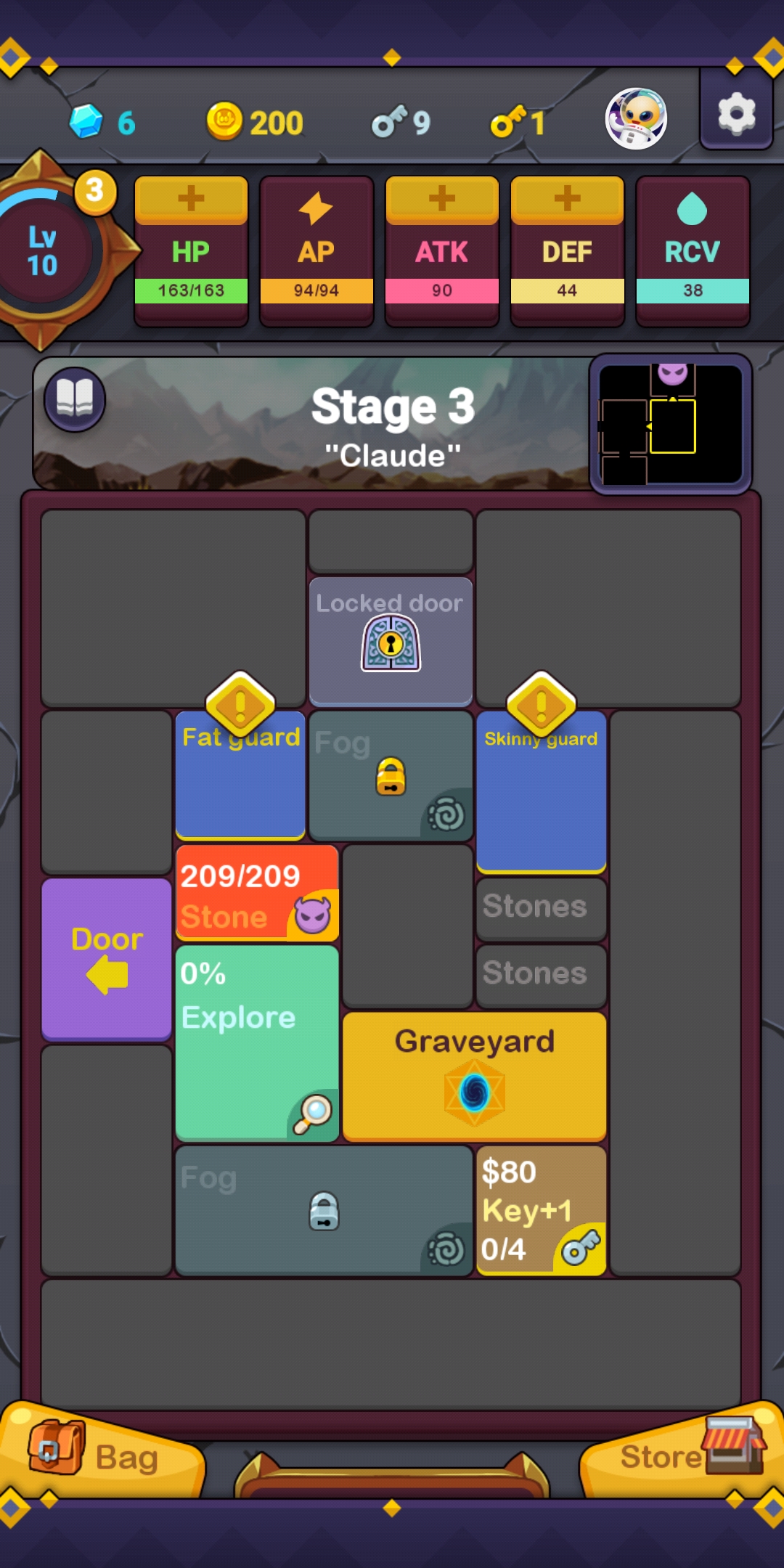 Minimal Dungeon RPG by CapPlay, is just what the title says – a minimalist dungeon crawler with RPG elements for mobile. The game will present you with various blocks that you must tap in order to overcome the obstacle they represent. Sometimes they will be enemies, other times they will be some sort of resource. There are also blocks with padlocks on them, these are unlocked using either silver or gold keys, often these will have better loot than the standard blocks. There are also blocks which will offer you keys, loot or skill points in exchange for cash. Each dungeon level will have a series of rooms that you will need to navigate before reaching the final boss for that level. Beat the boss and you’ll progress.