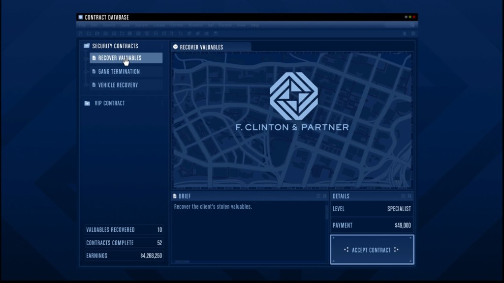 - Completing more contracts will increase the passive income of the agency (stored in the safe in your office) up to a max of $50 000 for every in game day