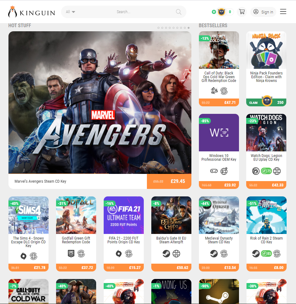 Kinguin features Steam keys on sale at very reasonable prices – it will find you the best possible deal across a range of steam key stores. Be aware that you will be subject to the tax rate of your country of residence.