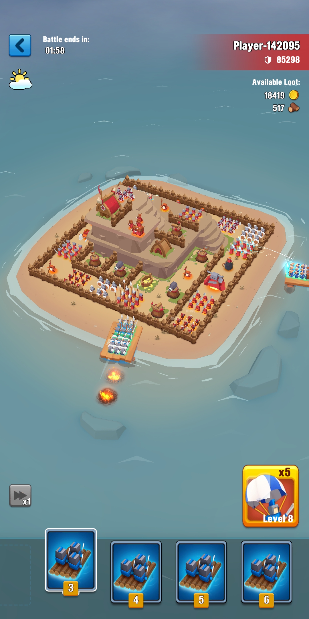 - When attacking other player’s islands try and put your rafts down in such a way so as to hit the three core buildings fastest (Army Camp, Gold Mine, City Hall)