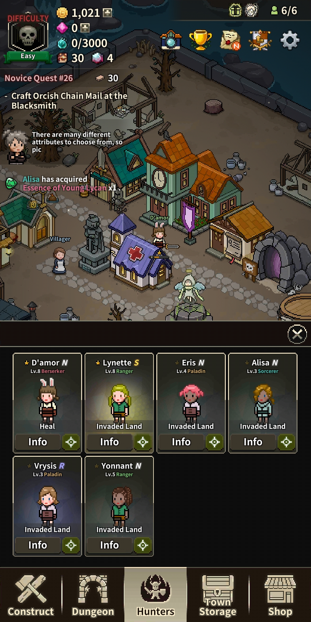 Every time you hit something you expend your energy, you can regain it by eating. Similarly, you start out with 3 hearts/health, if you get hit by an enemy that can drop to 2, certain foods will help replenish hearts. As you unlock islands you come across various puzzles and dungeons which will reward you with resources and ways to increase your health, damage or energy. Every time you level up you are also given a chance to spend your skill points on new skills. There are 4 main areas to spend your skills in, which are also the 4 main building types – industrial, farming, economic and magic.