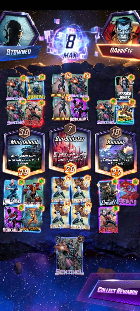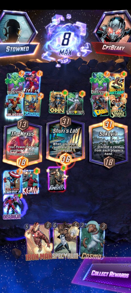 Marvel have joined the world of online multiplayer card games with their entry – Marvel Snap, published by Nuverse. The game is card collection and battling game which lets you collect all your favourite Marvel superheroes and villains and put your skills to the test against other players. The actual battles are quite simple and most importantly for a mobile game – quick to play. Each game has 3 locations at which players put their cards. All 3 locations start out hidden with one revealing each of the first 3 turns. Each location will be randomised and have some sort of modifier that can apply to specific cards, the entire location or even the entire game. Players need to try and win 2 out of 3 locations to win the game where each card’s power contributes to the player’s score at a specific location.